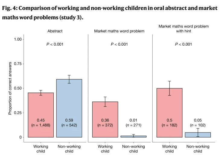 Math educators are reeling from ongoing evidence of performance declines, just like their peers in other subjects. Edutopia recently posted a crowd-sourced list of math apps teachers have found successful in their classrooms. Math performance declines are particularly pernicious among low performers due to the year-on-year cumulative nature of math learning, argue two math education experts in The 74. As such, they argue that even high-quality instructional materials must be paired with data-informed intervention lessons (i.e., Tier 2 instruction) to promote academic growth and recovery among struggling students. A new peer-reviewed study of math skills among children in India highlights the contextually situated nature of math knowledge: Children who worked in a market were capable of performing complex arithmetic quickly when in a market context but had difficulty transferring that knowledge to a pencil-and-paper context.